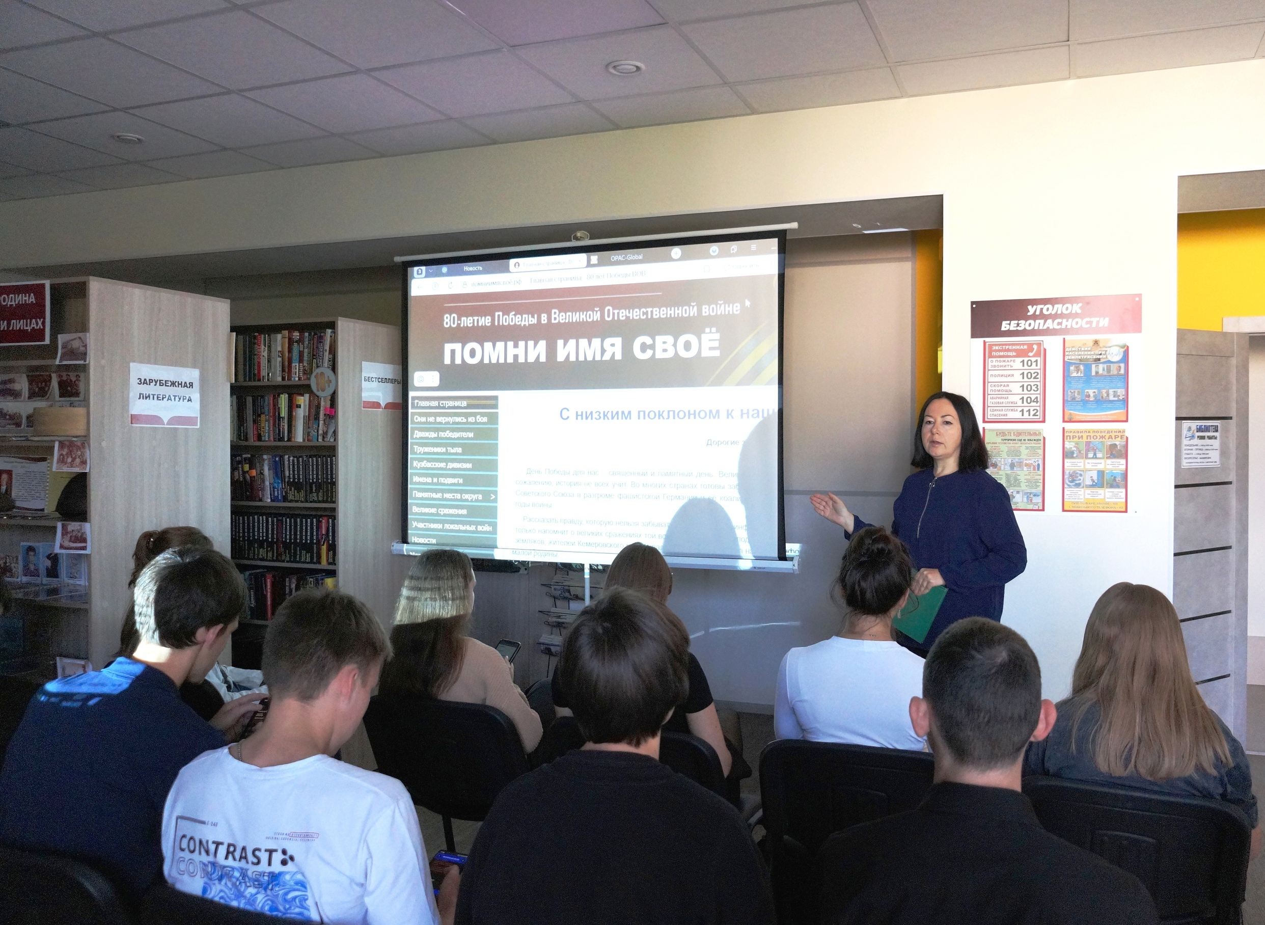 В модельной сельской библиотеке п.Новостройка прошла презентация муниципального виртуального ресурса «Помни имя свое», подготовленного к 80- летнему юбилею Победы. Мероприятие организовано совместно со школой. Гости мероприятия познакомились с разделами ресурса, в которых можно узнать о подвигах кузбассовцев, о тружениках тыла и дважды победителях – о тех, кто прошел войну, а затем восстанавливал народное хозяйство, об участниках парадов Победы разных лет и о тех, кто удостоен звания Героя Советского Союза. Библиотекари рассказали о книгах «ДВАЖДЫ ПОБЕДИТЕЛИ Кемеровского муниципального округа». Посоветовали использовать книги и виртуальный ресурс при поиске краеведческой исторической информации.